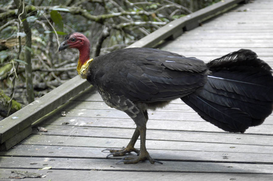 As turkeys are a strong theme with the celebration of Thanksgiving in the United States, a photo of an Australian brush turkey (or scrub turkey) seemed appropriate. Unrelated to the American turkeys that are about to be feasted upon, the brush turkeys are popular in Australian bushland and picnic areas with limited fear of people.
